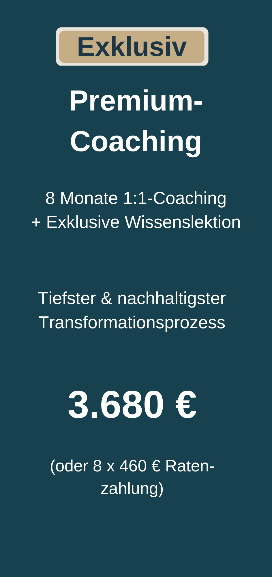Das 8-Monats-Coaching beginnt ab € 335,-- / Monat.